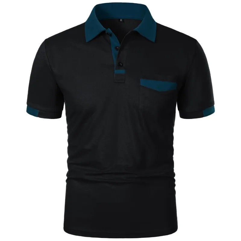 Men’s Solid Color Polo Shirt with Pocket – Lightweight Breathable Short Sleeve Tee